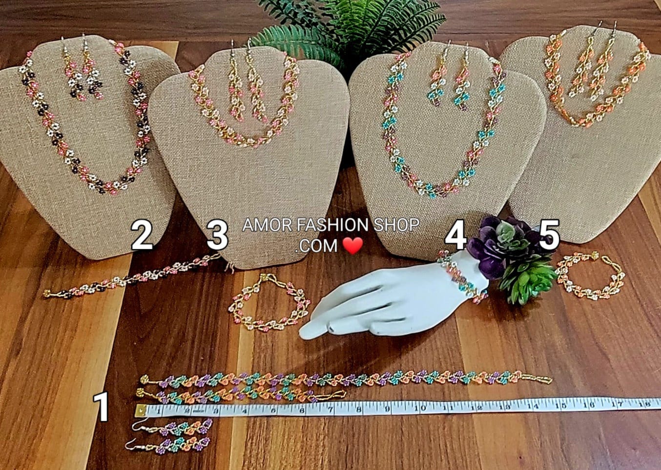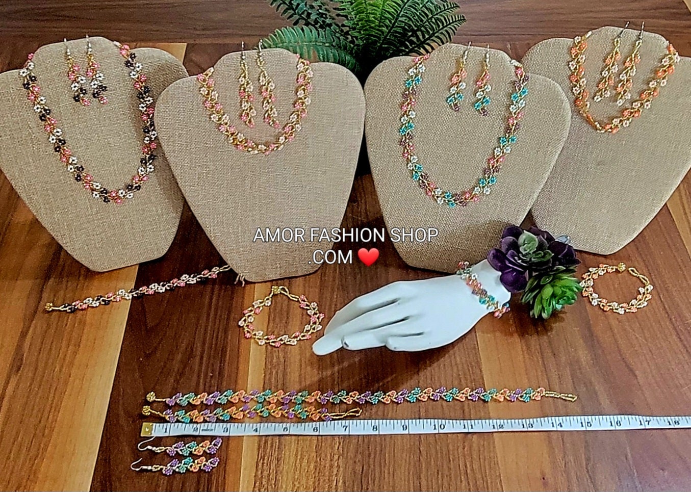 Gorgeous handmade pieces. Looks as depicted in photos :) seller also added a beautiful handmade bracelet to my package.