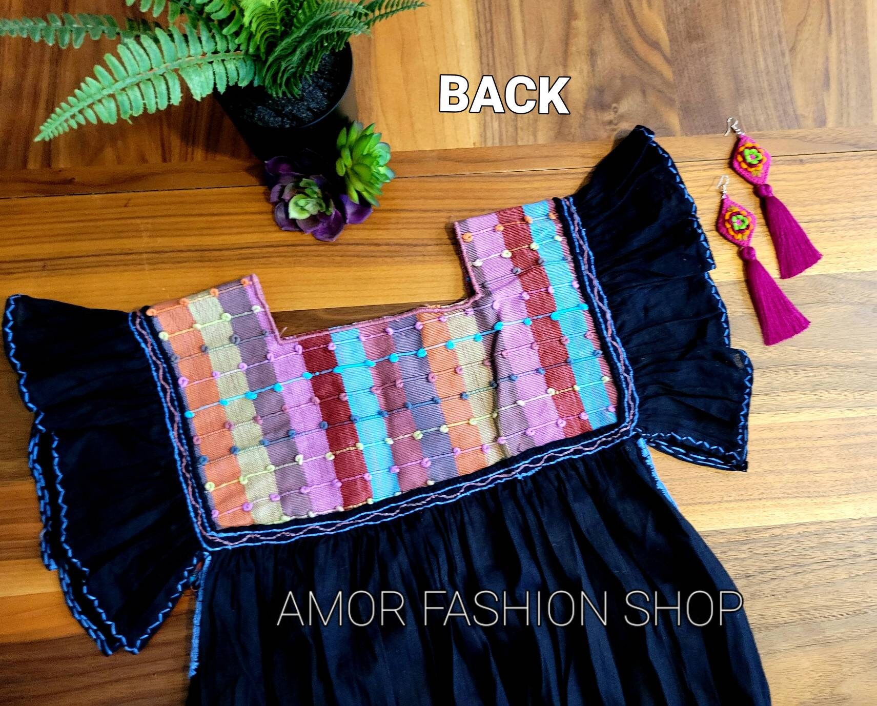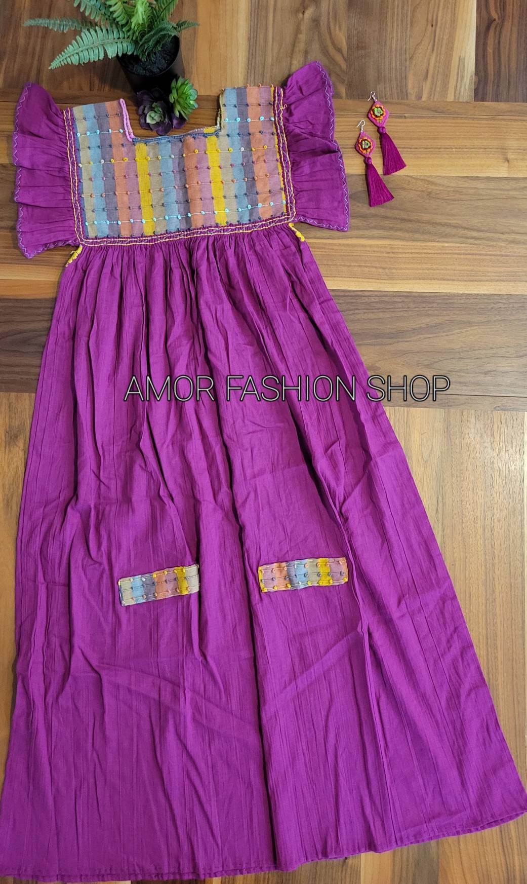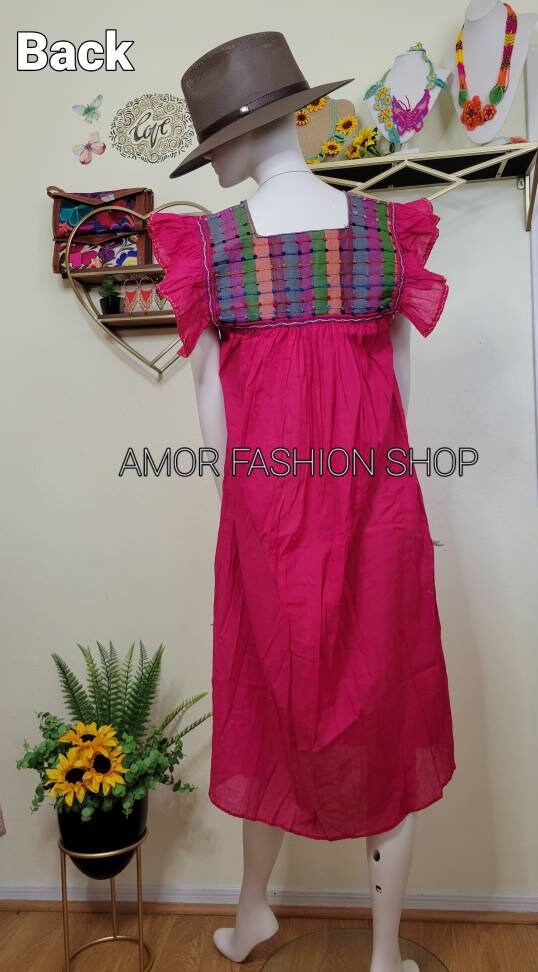 Butterfly Pleaded Sleeves Front and Back Handcrafted colorful Fabric with Thin Fresh Cotton Dress / Super Lindo Vestido Artesanal Manga Mariposa con Pecho y Espalda en Telar.