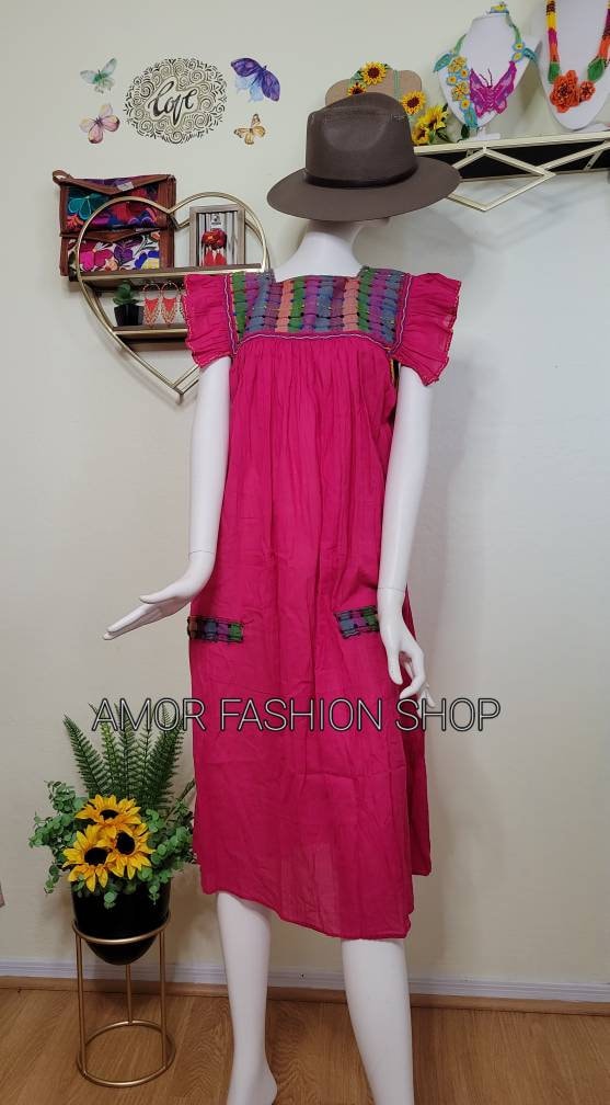Have a Touch of Color with this one of a kind made with LOVE Mexican Hand Embroidered Style Dress. It fits comfortably and loose.