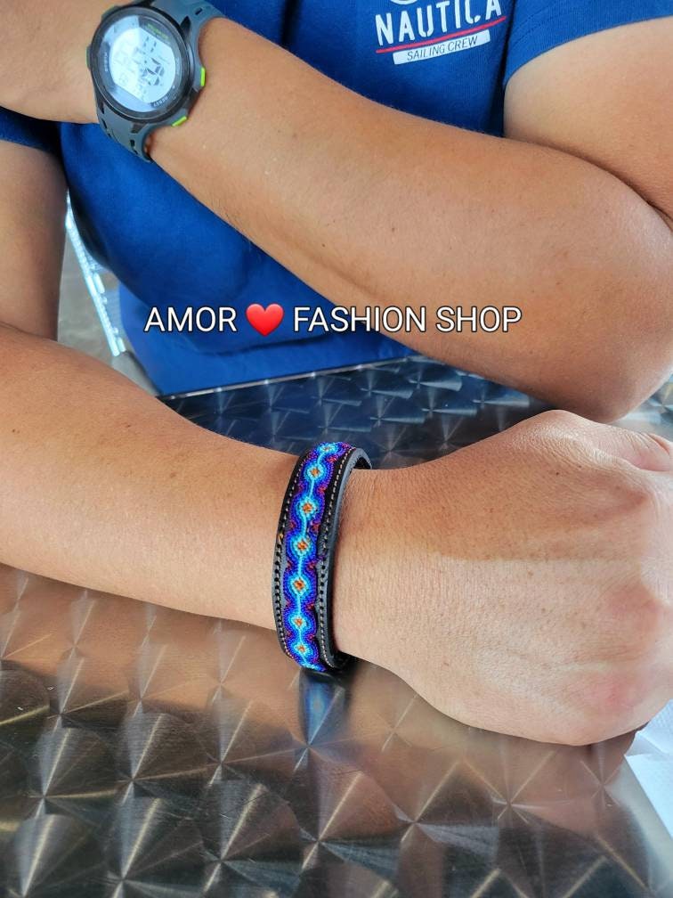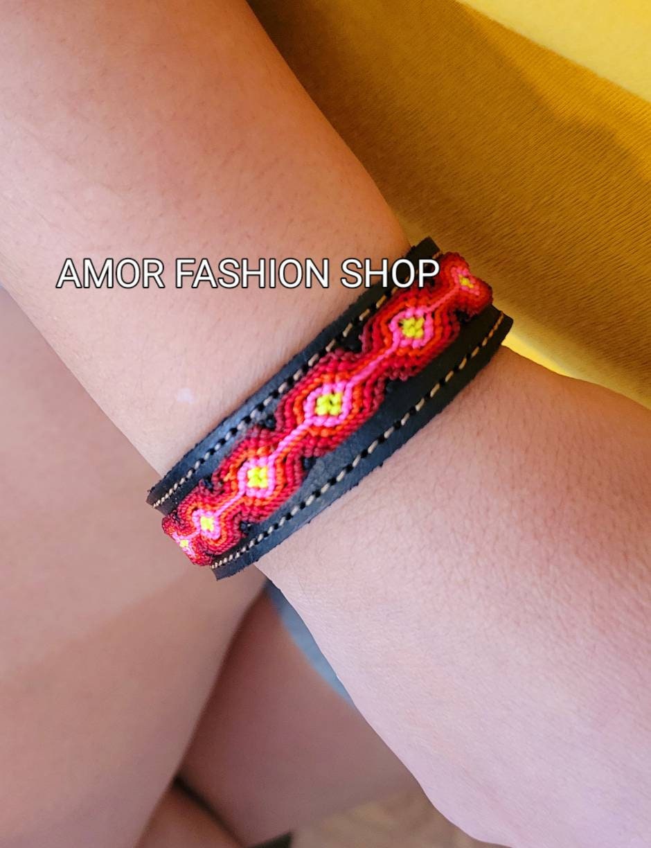 Unisex Leather Threaded Adjustable Bracelet / Brasalete de Piel Adjustable con Hilo Tejido Coloridos