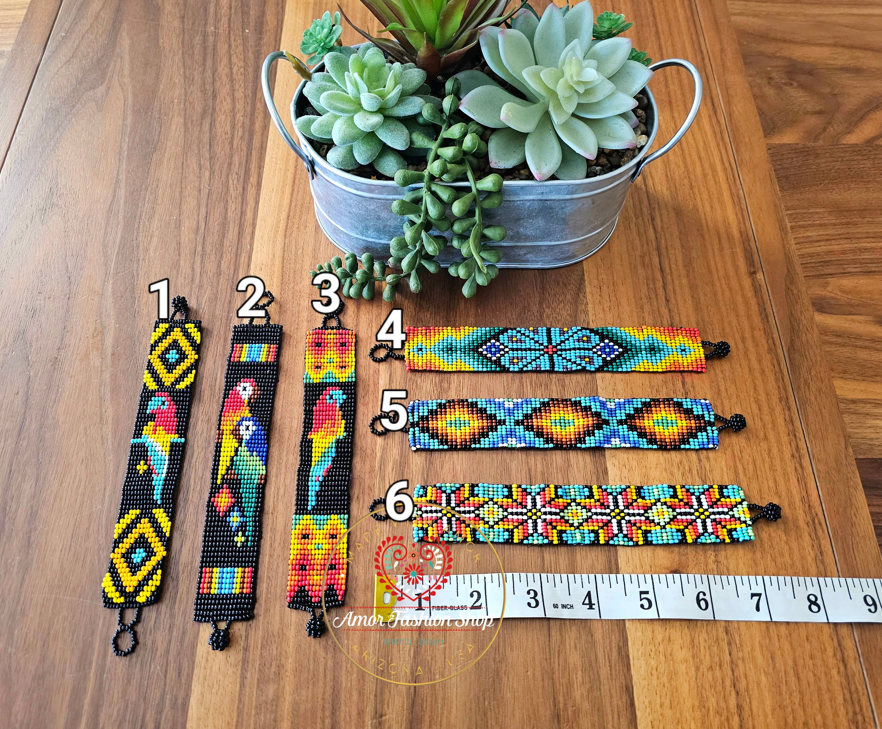 Unisex Flat Beaded Bracelets / Pulcera Alfombra Chaquira Huichol