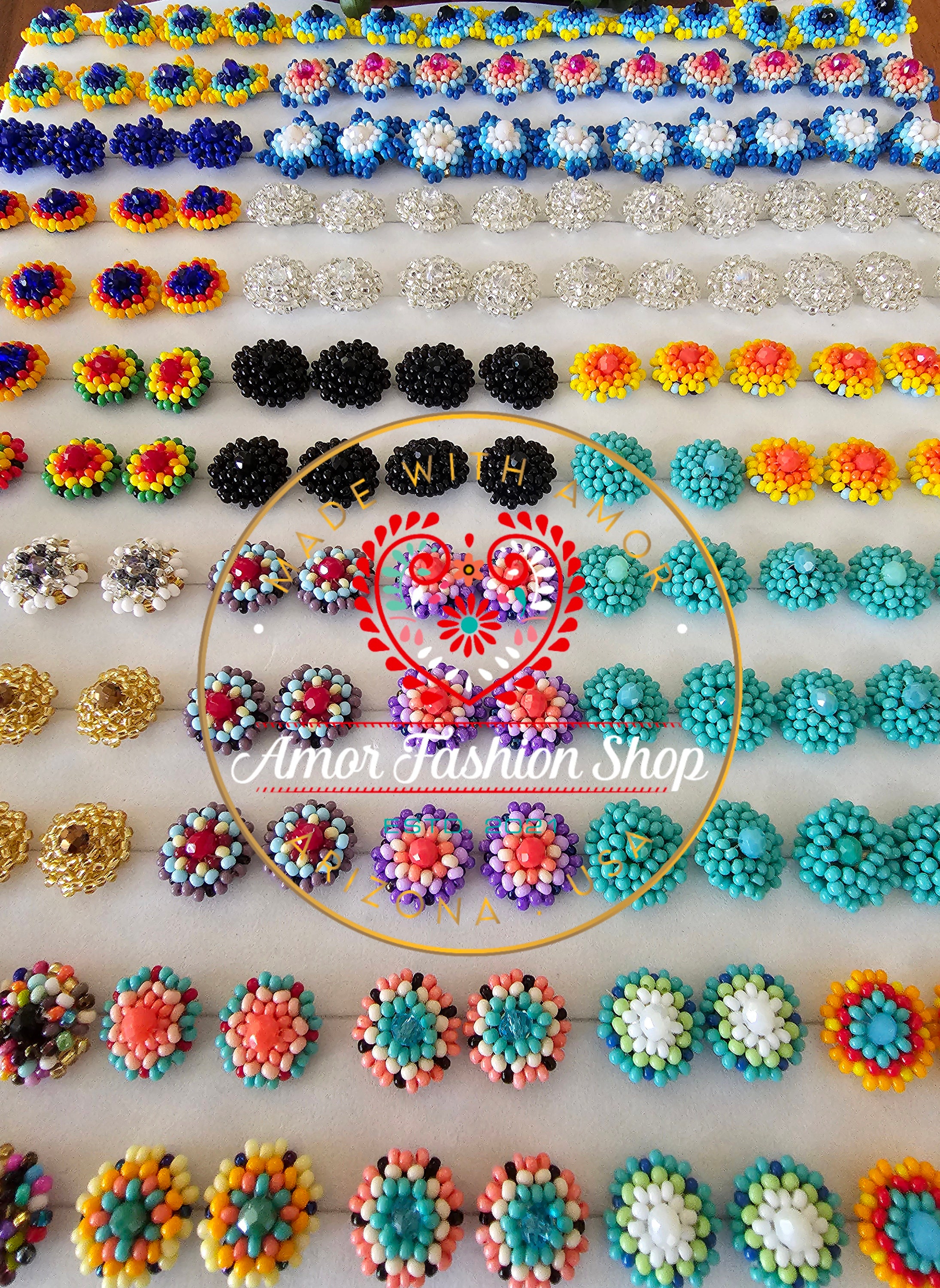 Lovely Flower Beaded Stud Earrings / Aretes Broquales Artesanales.