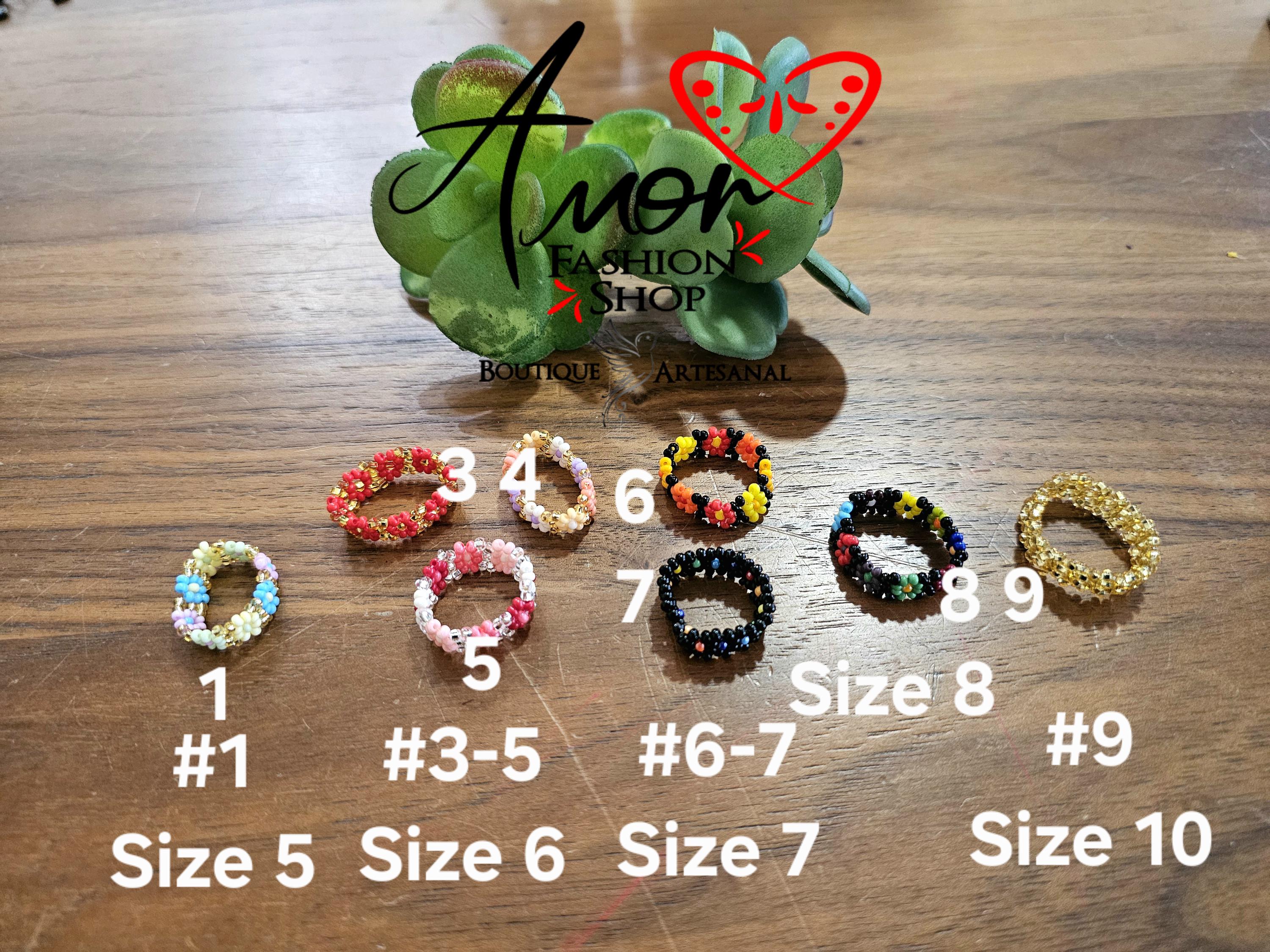 Ring Florecita Beaded Authentic Indegenous Artisan Made / Anillo argolla Mexicana Huichol Chaquira Artesanal